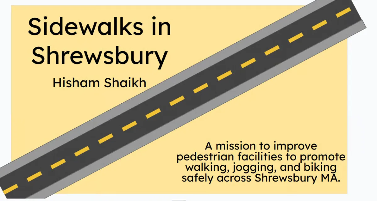 Hisham Shaikh’s Sidewalks in Shrewsbury project focuses on improving pedestrian facilities to promote safe walking, jogging, and biking in Shrewsbury, MA. His mission is to enhance safety by adding sidewalks to old and new roads and installing crosswalks at dangerous intersections. By petitioning residents, collaborating with town planners, and presenting proposals at town meetings, he aims to bring his vision to life. With a clear action plan, his project strives to create a safer, more accessible community.